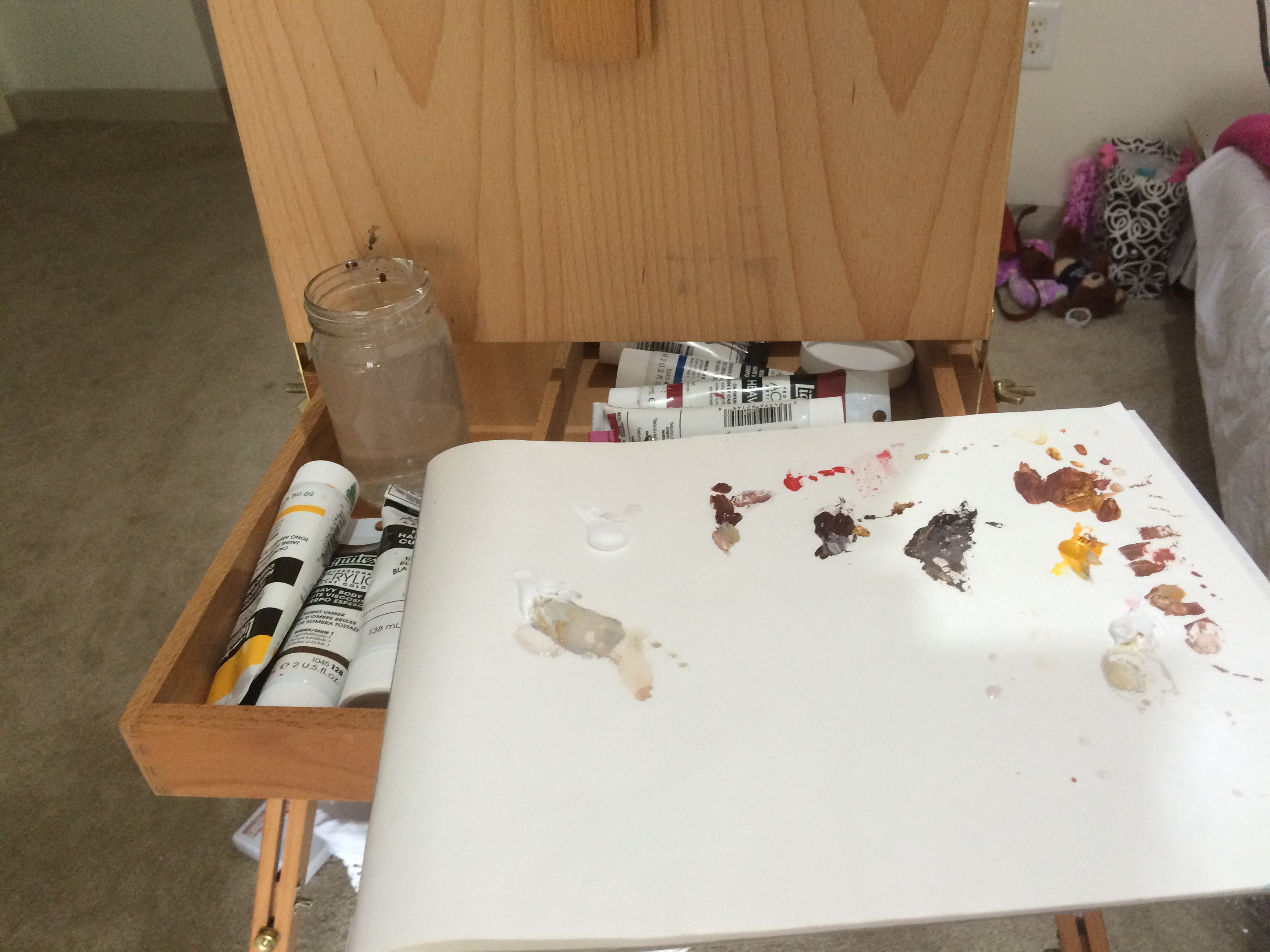 I’m slowly seeing the progress in how quickly I can work along with my ability to more easily match colors. I also realize that if I’d been working in oil, she’d be much more luminous and better blended simply due to the medium. But working with acrylics is much faster (and cheaper) for learning.