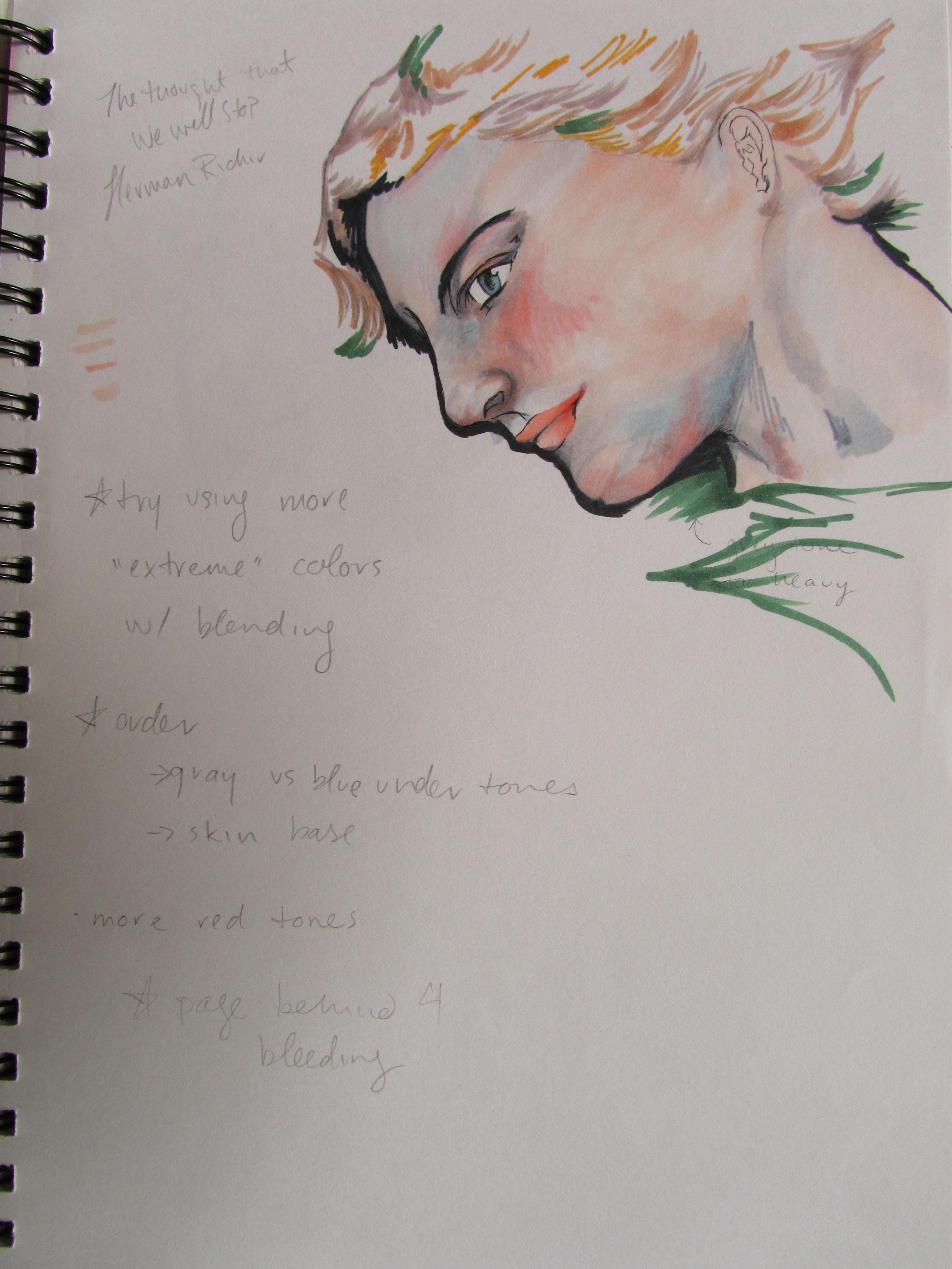 I’ve been working a lot with Copic markers. I want to do a few colored pencil drawings of skin tones. I find that creating a flat field of color can be quite difficult for me. I also think that I may try to paint one or more of these portraits. I’ve realized that preparatory work can make a real difference in the quality of the final piece. Practice makes perfect.