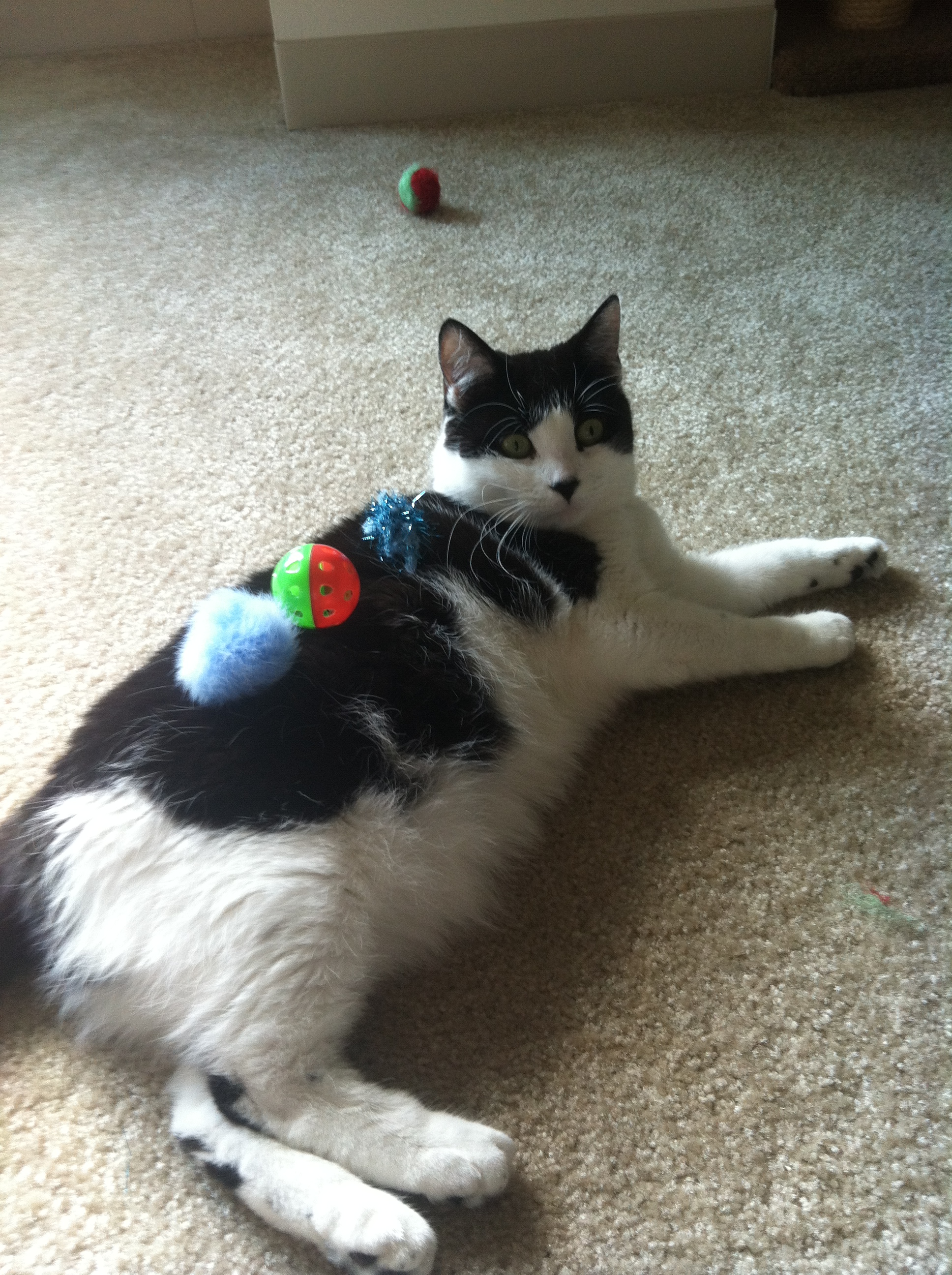 I also talk about my two cats. Prilla (Full name: Priscilla) is a shelter cat from the MSPCA. She was a mom living out on the streets until the MSPCA found her. All her kittens were adopted before her. She languished in ill humor. Finally, I adopted her, whisking her away to Random Hall. Prilla is a laid back cat with plenty of nicknames: Prilla-illa, Prills, Meow-ster, Loser cat, Bae, Cat (Breakfast at Tiffany’s style), and more. Her least favorite nick name is Cow from when she had her tummy shaved from neutering and her black spots gave her a particularly unfashionable cow like look. Her mood has improved since then. Prilla now enjoys sleeping, eating, and having her chin scratched.